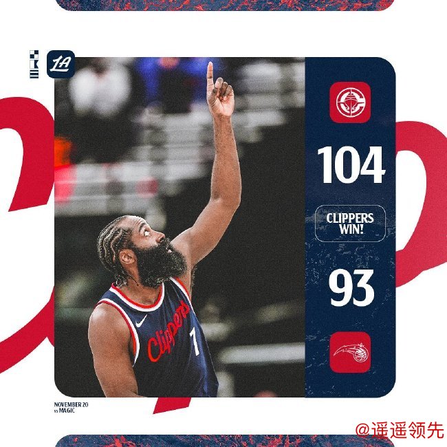 鲍威尔缺阵,哈登砍下24分7篮板5助攻率领快船力克魔术取得3连胜。